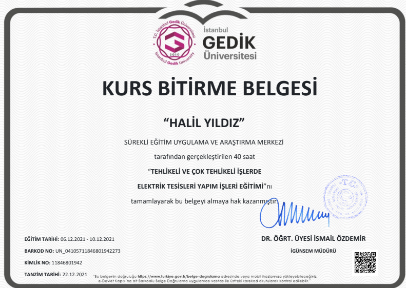 TEHLİKELİ VE ÇOK TEHLİKELİ İŞLERDE ELEKTRİK TESİSLERİ YAPIM İŞLERİ